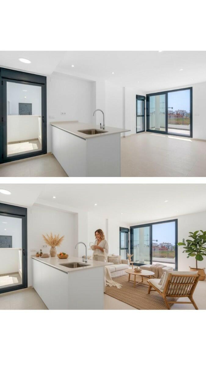 DetallesModerno apartamento esquinero de 2 habitaciones con vistas a la piscina en Santa Rosalía Lake & Life Resort